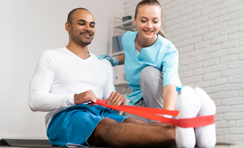 La Terapia física forma parte del proceso de rehabilitación y mantenimiento de los pacientes, ayudándolos a mejorar o mantener las capacidades funcionales. Incluye el desarrollo de la fuerza, flexibilidad y resistencia.